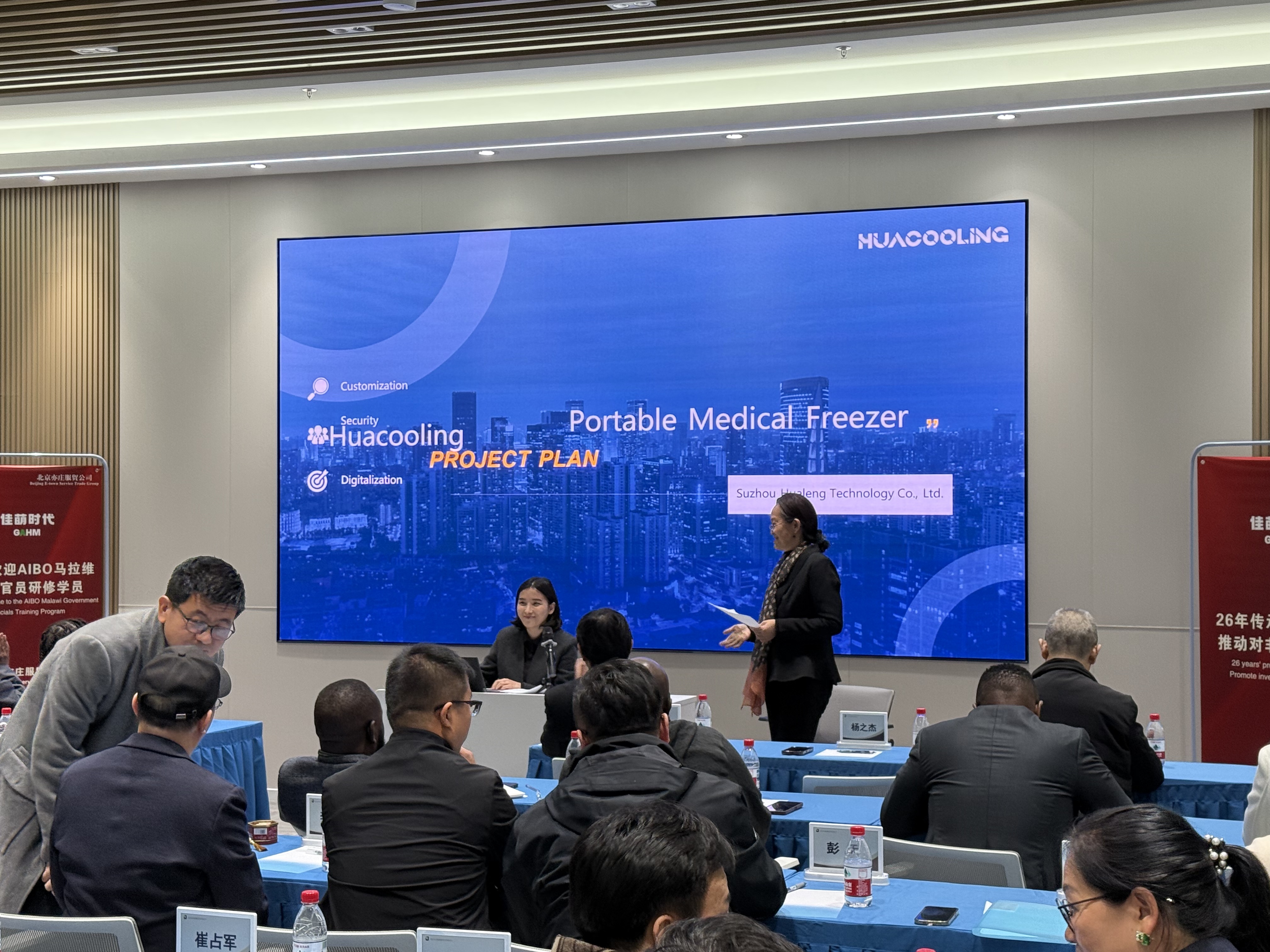 On November 10, 2025, Suzhou Hualeng Technology Co., Ltd. was invited to participate in a roundtable meeting with a Malawian delegation held at the Blue Whale Garden Customs Hall. During the meeting, Hualeng Technology vividly showcased its innovative capabilities in the ultra-low temperature refrigeration field and its comprehensive solution-providing expertise for complex medical cold chain challenges through corporate promotional videos, physical product displays, and PPT presentations. Its mobile biomedical cold chain box, which precisely addresses the pain points of weak infrastructure and relatively backward medical equipment in Africa, sparked enthusiastic responses on-site.